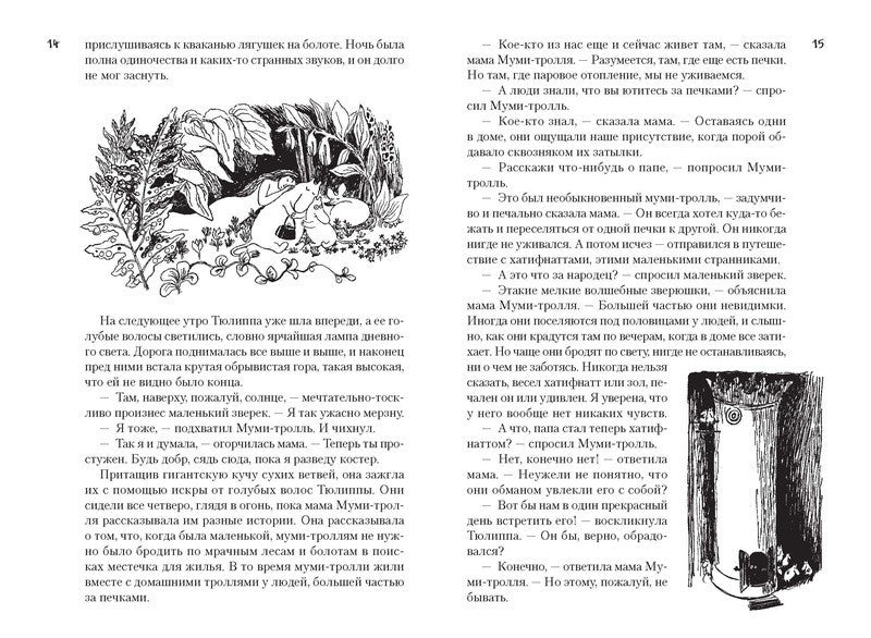 В маленькой долине на зеленом лугу стоит удивительный дом, выкрашенный голубой краской. В этом доме живет семейство муми-троллей: Муми-мама, Муми-папа и сам Муми-тролль. И даже если в один прекрасный день на пороге объявится большая компания, здесь всем найдется место. Вообще-то, вокруг много всего непонятного и опасного — стихийные бедствия, волшебные шляпы, муравьиные львы… Муми-тролли, снорки, Снифф, Снусмумрик, их друзья и знакомые путешествуют, размышляют о нужности и ненужности всего сущего, пишут книги и ищут сокровища. Но какие бы приключения не ожидали Муми-тролля и его друзей, они знают: даже если в их долину упадет комета, даже если случится наводнение или буря, лес, сад и дом останутся на месте. На веранде всегда можно будет выпить чашечку кофе и полакомиться печеньем или тортом, который испекла Муми-мама… Папа с мамой все уладят, только нужно вовремя вернуться домой!..