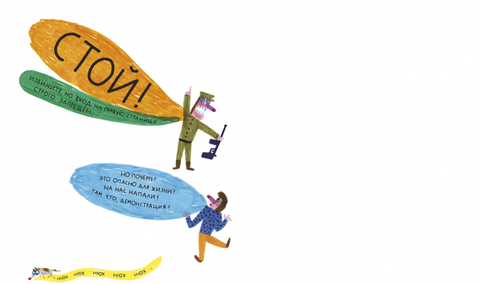От солдата ничего не зависит — он беспрекословно подчиняется приказам своего генерала. На этот раз ему приказали следить, чтобы никто не переходил черту. Правая страница книги должна оставаться пустой — она только для генерала! Толпа у черты растёт и растёт, и скоро её будет уже не сдержать...