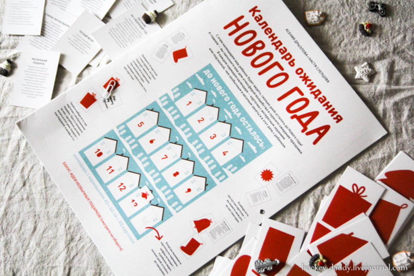 С этим необычным календарем ваш ребенок будет видеть, сколько дней осталось до Нового года! А главное, выполняя простые веселые задания, вы наполните ваш дом атмосферой волшебства и скрасите ожидание праздника.