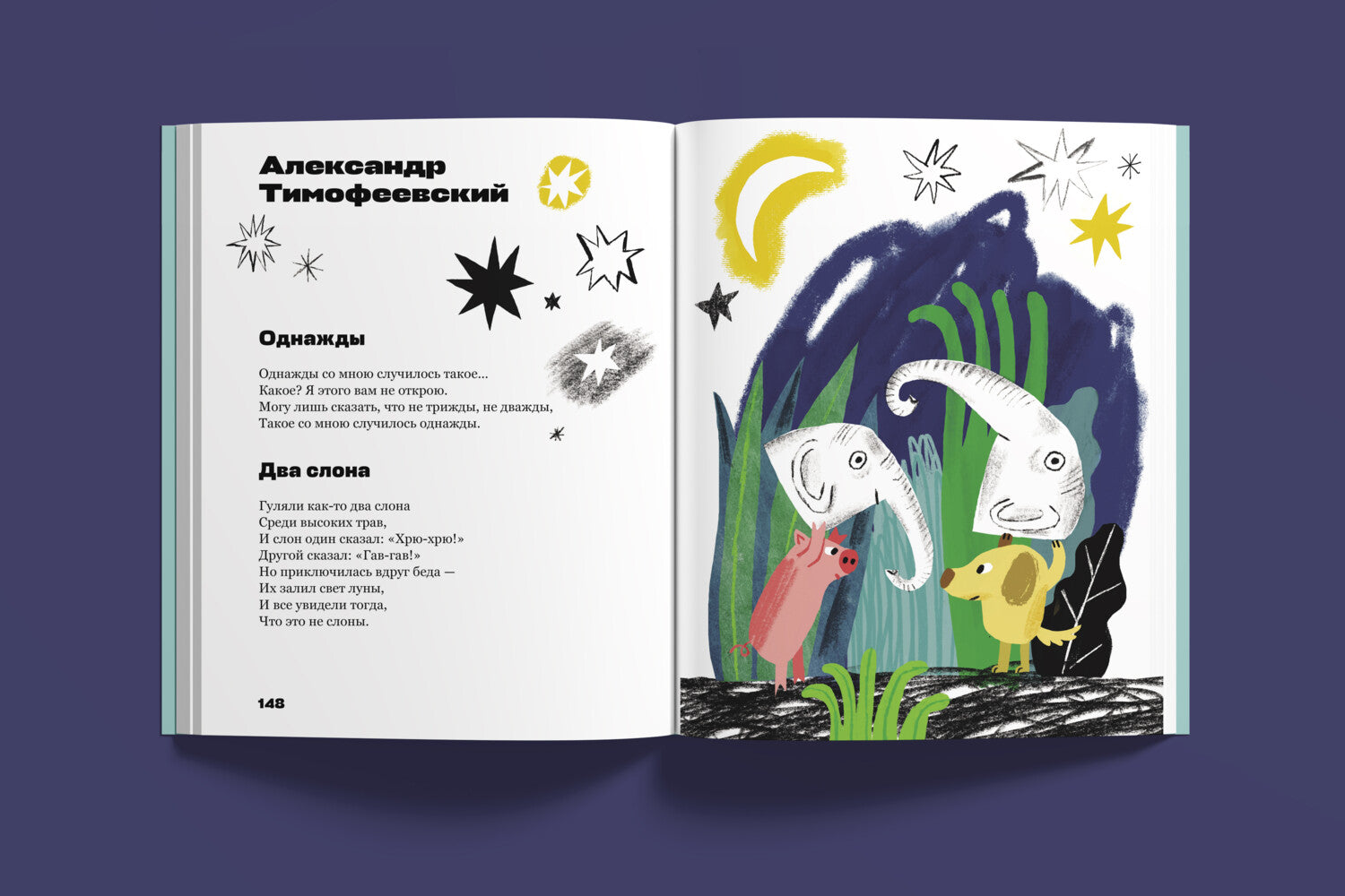4. Иллюстрации к стихотворениям придумала и нарисовала Наталья Яскина — иллюстратор графического путеводителя «Евгений Онегин» Алексея Олейникова, книг «Маленький домик в больших лесах» и «Домик в прерии» Лоры Инглз Уайлдер, сборника стихов Артура Гиваргизова «Как-то я летел с рябины» и других. Наталья — дважды дипломант конкурса «Образ книги», финалистка конкурсов CJ Picture Book Festival и Nami Island International Picture Book Illustration Concours.