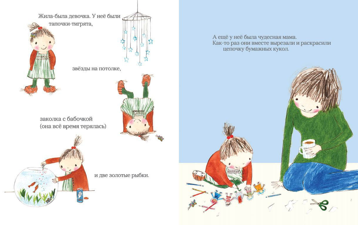 Это история про то, каким счастливым бывает детство, когда для того, чтобы начались приключения, достаточно раскрашенной гирлянды из бумажных фигурок и немножко фантазии. Ну и конечно, чтобы любимая мама подыграла. Тогда тарелка превращается в остров, скатерть - в океан, а тапочки - в зубастого тигра. И даже если детство заканчивается, все это волшебство остается в памяти и оживает, когда в доме снова появляется малыш..